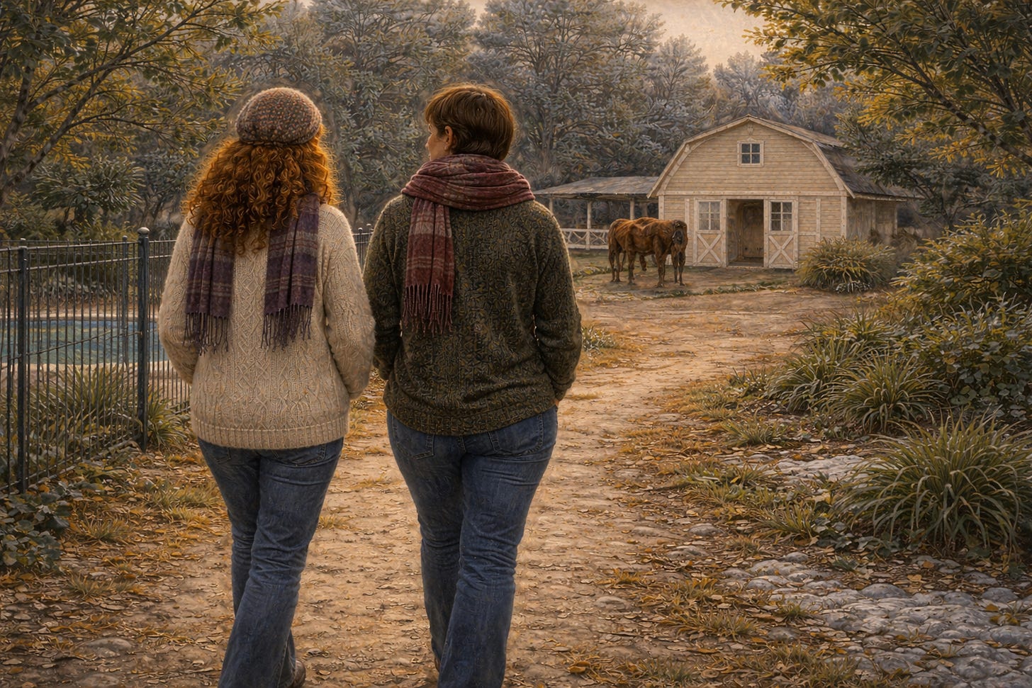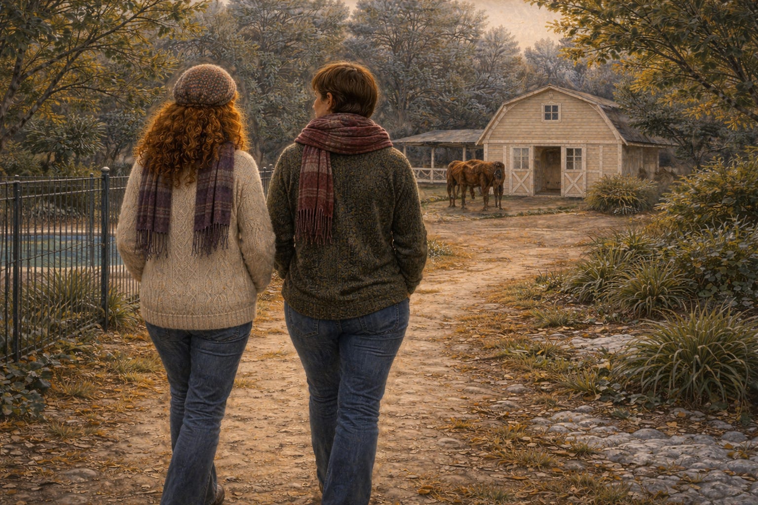 Leaves crunched under our shoes as we walked up to the gate that led to the horses and pasture.